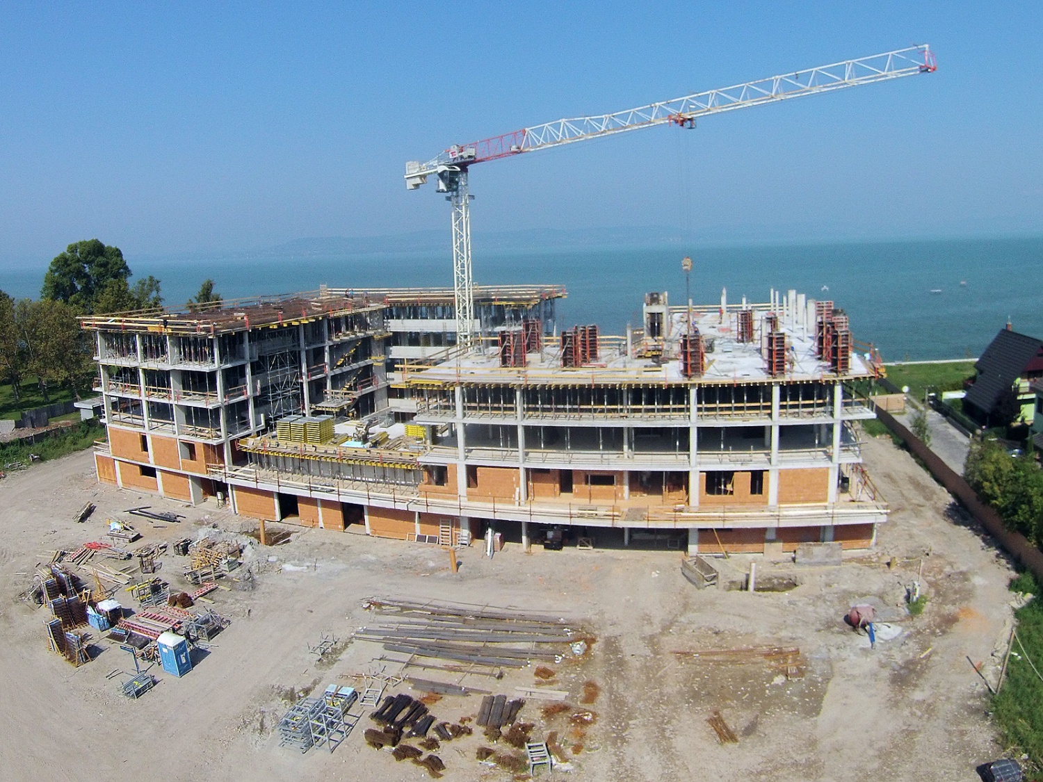 A saját vízparttal rendelkező 10.000 m2-es területre tervezett 83 lakás átadását 2017. július végére hirdettük, már az építkezés kezdetekor. A hosszú és rendkívüli hideg tél sem befolyásolta az építkezés ütemét, minden a tervnek megfelelően haladt.